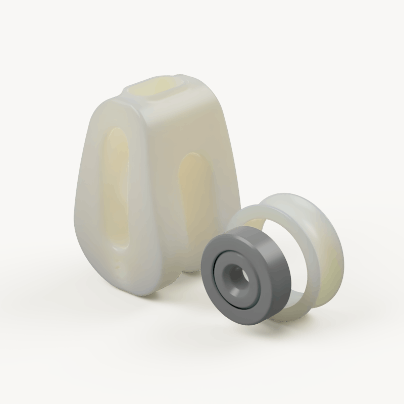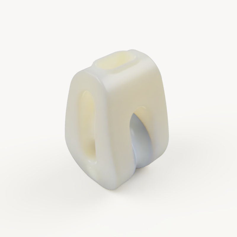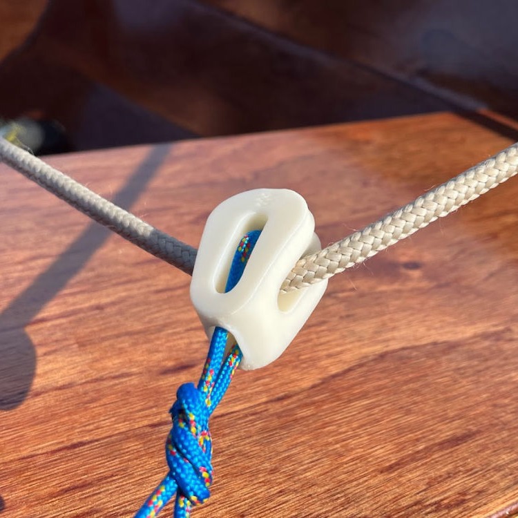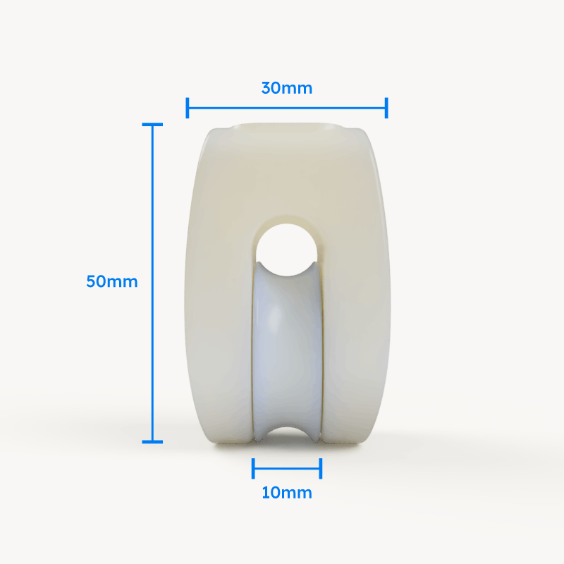 O moitão concha é feito inteiramente de ABS em sua fabricação. Um simples cabo segura a roldana com o rolamento plástico e assim garante o seu pleno funcionamento.